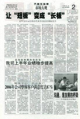服務于心 關注客戶 2006年公司整體客戶滿意度達87%